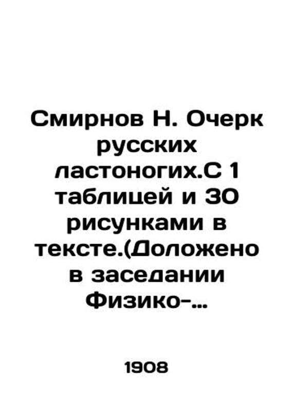 N. Smirnovs Essay on Russian Swallows. With 1 table and 30 figures in the text (reported in the meeting of the Physics and Mathematics Department on January 25, 1906). In Russian /Smirnov N. Ocherk russkikh lastonogikh.S 1 tablitsey i 30 risunkami v tekste.(Dolozheno v zasedanii Fiziko-Matematicheskogo otdeleniya 25 yanvarya 1906 g.). Notes of the Imperial Academy of Sciences on the Physical and Mathematical Department. VIII series. Volume XXIII. # 4. St. Petersburg: Typography of the Imperial Academy of Sciences. Vas.ostro., Line 9, # 12. 1908. 75s. We have thousands of titles and often several copies of each title may be available. Please feel free to contact us for a detailed description of the copies available. SKUalbf2562b3b27c53565.