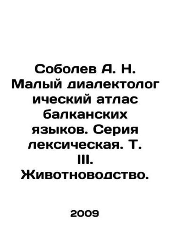 Sobolev A. N. Small dialectical atlas of Balkan languages. Vol. III. Animal husbandry. In Russian /Sobolev A. N. Malyy dialektologicheskiy atlas balkanskikh yazykov. Seriya leksicheskaya. T. III. Zhivotnovodstvo. Edited by A. N. Sobolev. St. Petersburg: Munchen: Science: Verlag Otto Sagner, 2009. We have thousands of titles and often several copies of each title may be available. Please feel free to contact us for a detailed description of the copies available. SKUalbf260f617943e7dad.