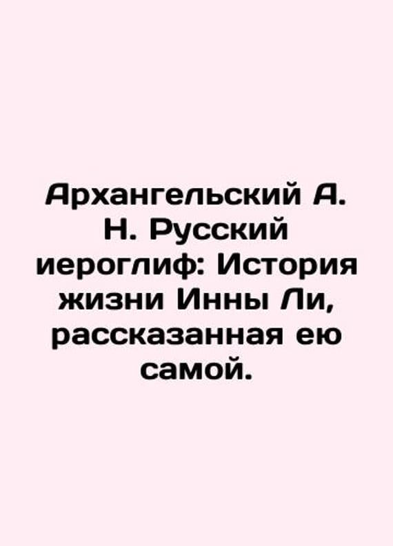 Arkhangelsky A.N. Russian hieroglyph: The story of Ina Lees life, as told by herself. In Russian /Arkhangelskiy A. N. Russkiy ieroglif: Istoriya zhizni Inny Li, rasskazannaya eyu samoy. M. Editorial Board Elena Shubina 2022. 356 p. We have thousands of titles and often several copies of each title may be available. Please feel free to contact us for a detailed description of the copies available. SKUalbf28e73a078f89c71.