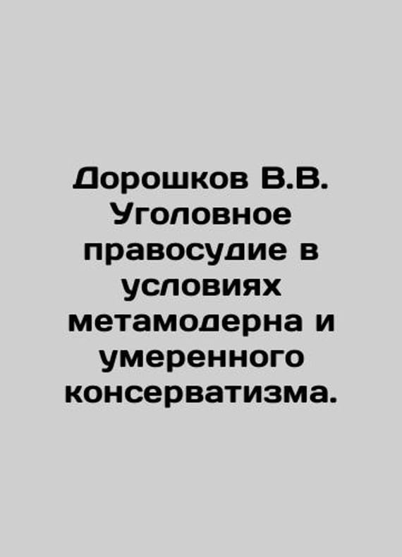 Doroshkov V.V. Criminal justice in conditions of metamorphosis and moderate conservatism. In Russian /Doroshkov V.V. Ugolovnoe pravosudie v usloviyakh metamoderna i umerennogo konservatizma. Moscow Prometheus 2023. 326 p. We have thousands of titles and often several copies of each title may be available. Please feel free to contact us for a detailed description of the copies available. SKUalbf29aac66e449fd5d.