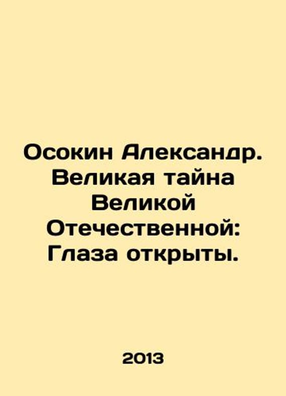Osokin Alexander. The Great Mystery of the Great Patriotic War: Eyes are Open. In Russian /Osokin Aleksandr. Velikaya tayna Velikoy Otechestvennoy: Glaza otkryty. M. Time 2013. We have thousands of titles and often several copies of each title may be available. Please feel free to contact us for a detailed description of the copies available. The delivery of this book might be delayed beyond the usual timeframe due to extended processing and preparation before shipment, and faster shipping options are not offered. Please inform us if you need the order by a certain date or have a deadline.SKUalbf2e8291a96492fda