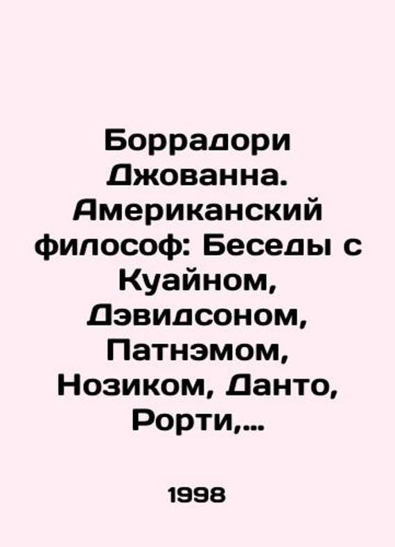 Borradori Giovanna. American Philosopher: Conversations with Quain, Davidson, Putnam, Nozik, Danto, Rorty, Cave, McIntyre, Kuhn In Russian /Borradori Dzhovanna. Amerikanskiy filosof: Besedy s Kuaynom, Devidsonom, Patnemom, Nozikom, Danto, Rorti, Keyvlom, Makintayrom, Kunom M. House of Intellectual Book, Gnozis 1998. 206 p. We have thousands of titles and often several copies of each title may be available. Please feel free to contact us for a detailed description of the copies available. SKUalbf2eb8b0fc5942230.