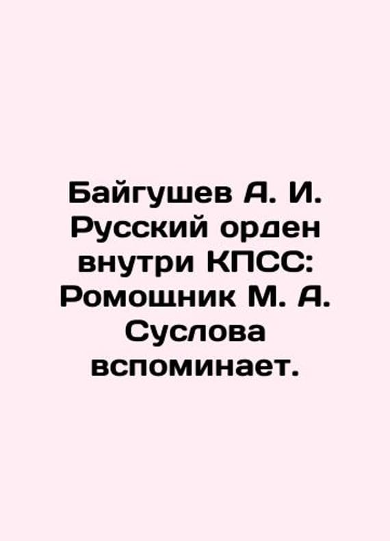 Baygushev A. I. The Russian Order within the CPSU: Romohulnik M. A. Suslova recalls. In Russian /Baygushev A. I. Russkiy orden vnutri KPSS: Romoshchnik M. A. Suslova vspominaet. M. Rodina 2021. 256 p. We have thousands of titles and often several copies of each title may be available. Please feel free to contact us for a detailed description of the copies available. SKUalbf2f2fbbe1293ae13.