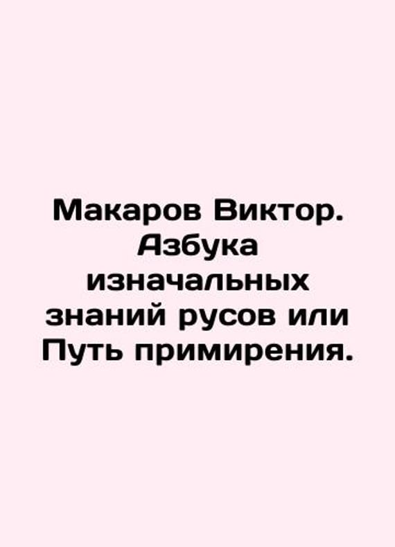 Makarov Viktor. The ABC of Russ Initial Knowledge or the Way of Reconciliation. In Russian /Makarov Viktor. Azbuka iznachalnykh znaniy rusov ili Put primireniya. Moscow: White Alves, 2015 256 p. We have thousands of titles and often several copies of each title may be available. Please feel free to contact us for a detailed description of the copies available. SKUalbf30a3d7cdfc220d6.