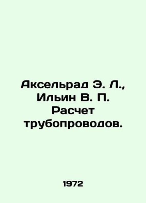 Axelrad E. L., Ilyin V. Calculation of pipelines. In Russian /Akselrad E. L., Ilin V. Raschet truboprovodov. L. Machinebuilding 1972. We have thousands of titles and often several copies of each title may be available. Please feel free to contact us for a detailed description of the copies available. SKUalbf31845267154de1c.