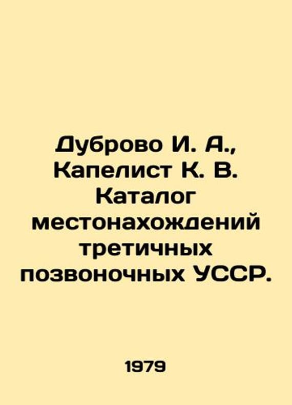 Dubrovo I. A., Capelist K. V. Catalogue of locations of tertiary vertebrates of the Ukrainian SSR. In Russian /Dubrovo I. A., Kapelist K. V. Katalog mestonakhozhdeniy tretichnykh pozvonochnykh USSR. M. Science 1979. We have thousands of titles and often several copies of each title may be available. Please feel free to contact us for a detailed description of the copies available. SKUalbf380f7979ec7956b.