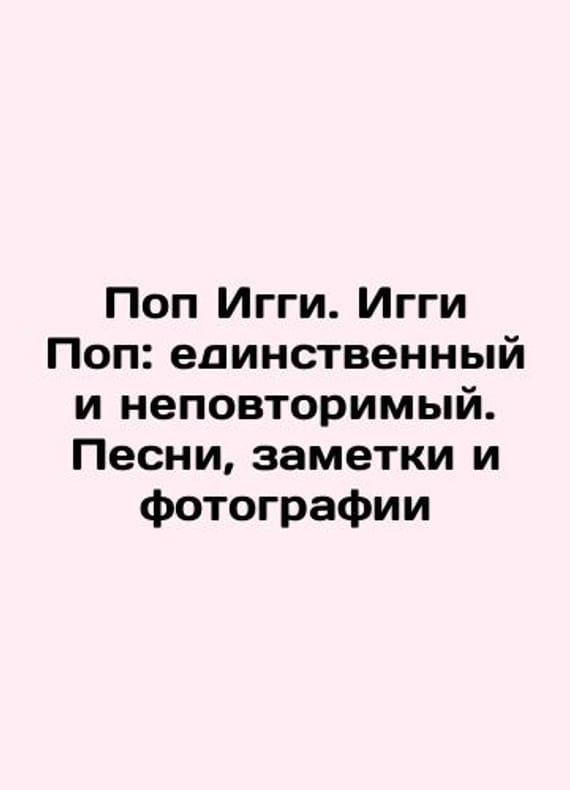 Pop Iggy. Iggy Pop: unique and unique. Songs, notes and photos In Russian /Pop Iggi. Iggi Pop: edinstvennyy i nepovtorimyy. Pesni, zametki i fotografii Series: Legends of the Music World: Illustrated Editions of M. Bombor 2022, 288s. We have thousands of titles and often several copies of each title may be available. Please feel free to contact us for a detailed description of the copies available. SKUalbf395a9a08f36ce1f.