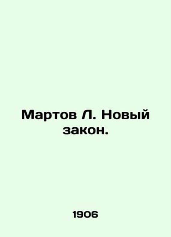 Martov L. New Law. In Russian /Martov L. Novyy zakon. St. Petersburg, Edition E.M.Alexeev. 1906. 16s. We have thousands of titles and often several copies of each title may be available. Please feel free to contact us for a detailed description of the copies available. SKUalb61e4fd25530b9d58.