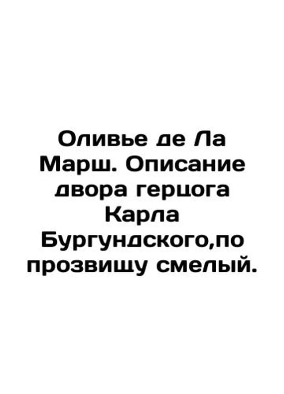 Olivier de La Marsh. Description of the courtyard of Duke Charles of Burgundy, nicknamed Brave. In Russian /Olive de La Marsh. Opisanie dvora gertsoga Karla Burgundskogo,po prozvishchu smelyy. Moscow: Eurasia 2023. 320 p. We have thousands of titles and often several copies of each title may be available. Please feel free to contact us for a detailed description of the copies available. SKUalbf3c137ac5a92ec56.