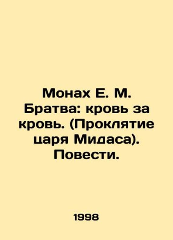 The Monk E.M. Bratwa: Blood for Blood. (The Curse of King Midas. In Russian /Monakh E. M. Bratva: krov za krov. (Proklyatie tsarya Midasa). Povesti. Series: Russian bestseller. The book was published in the authors edition. Artists S. Tsylov, V. Ostapenko. Moscow. EXMO-Press. 1998. 400 p. We have thousands of titles and often several copies of each title may be available. Please feel free to contact us for a detailed description of the copies available. SKUalbf3e87aed2c421b67.