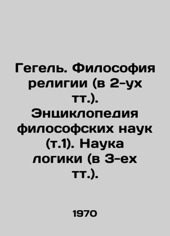 Hegel. The Philosophy of Religion (in 2 words). Encyclopedia of Philosophical Sciences (vol. 1). The Science of Logic (in 3 words). In Russian /Gegel. Filosofiya religii (v 2-ukh tt.). Entsiklopediya filosofskikh nauk (t.1). Nauka logiki (v 3-ekh tt.). Philosophical heritage). Set of 6 books. Moscow: Thought, 1970-1977. 536s. We have thousands of titles and often several copies of each title may be available. Please feel free to contact us for a detailed description of the copies available. SKUalbf42ad9a2279dbf28.