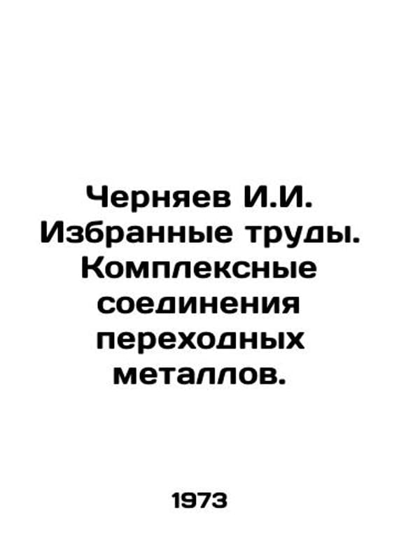 Cherniaev I.I. Selected works. Complex compounds of transition metals. In Russian /Chernyaev I.I. Izbrannye trudy. Kompleksnye soedineniya perekhodnykh metallov. M. Science 1973. 468s. We have thousands of titles and often several copies of each title may be available. Please feel free to contact us for a detailed description of the copies available. SKUalbf4322d9b47ec94f1.