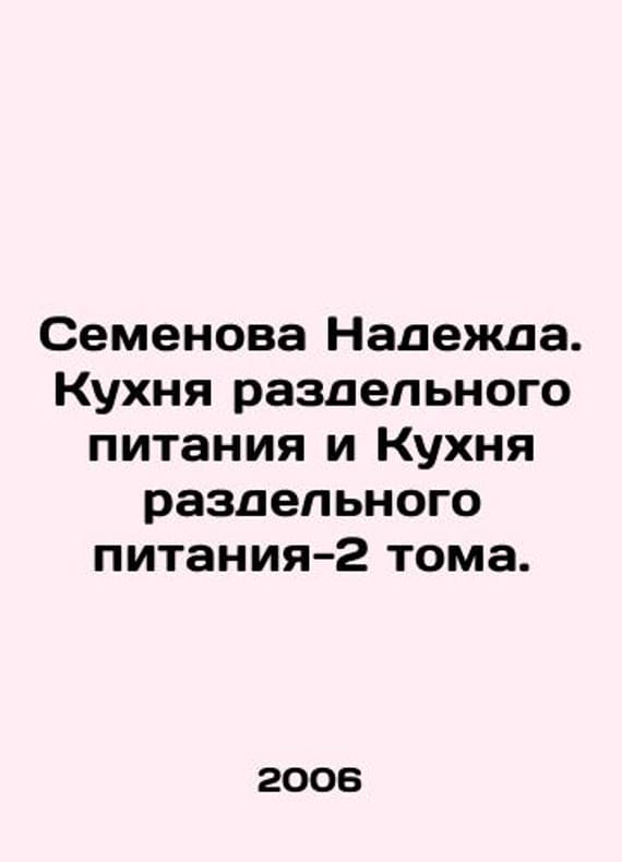 Semyonova Nadezhda. Separate Meal Kitchen and Separate Meal Kitchen-2 Volume. In Russian /Semenova Nadezhda. Kukhnya razdelnogo pitaniya i Kukhnya razdelnogo pitaniya-2 toma. S.-P. VTS, Dilya Publishing. 1998-2006 256 and 320cc. We have thousands of titles and often several copies of each title may be available. Please feel free to contact us for a detailed description of the copies available. SKUalbf436b6e63da58a03.