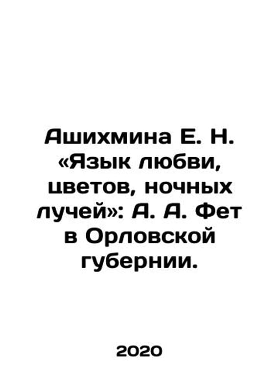 Ashikhmina E. N. Language of love, flowers, night rays: A. A. Fet in Oryol province. In Russian /Ashikhmina E. N. «Yazyk lyubvi, tsvetov, nochnykh luchey»: A. A. Fet v Orlovskoy gubernii. Eagle Publisher Alexander Vorobyov 202020. 308 p. We have thousands of titles and often several copies of each title may be available. Please feel free to contact us for a detailed description of the copies available. SKUalbf44f849d0bf6040f.