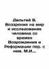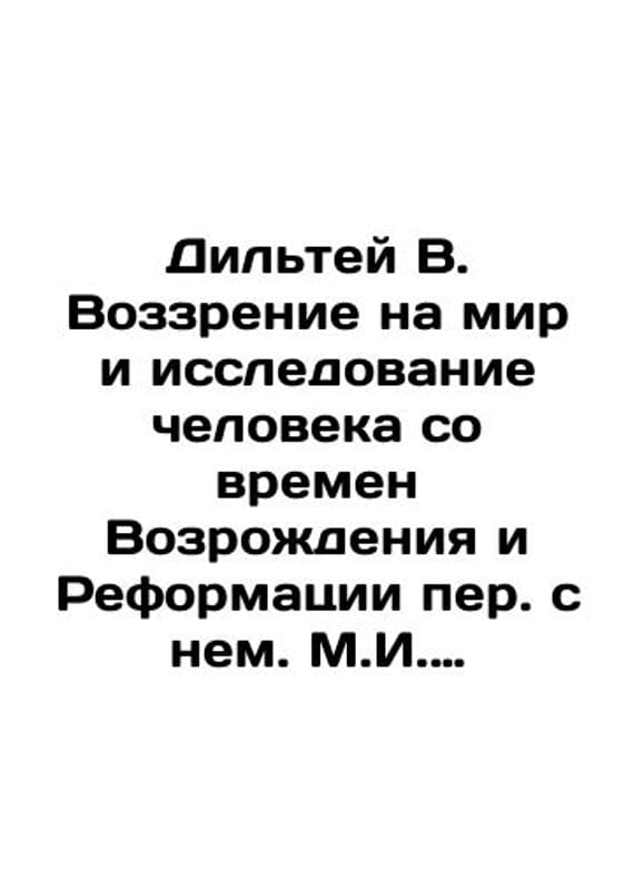 Diltey V. The view of the world and the study of man since the Renaissance and Reformation, translated by M.I. Levina In Russian /Diltey V. Vozzrenie na mir i issledovanie cheloveka so vremen Vozrozhdeniya i Reformatsii per. s nem. M.I. Levinoy St. Petersburg Center for Humanitarian Initiatives 2025. 464s. We have thousands of titles and often several copies of each title may be available. Please feel free to contact us for a detailed description of the copies available. SKUalbf479e0c9985732b5.