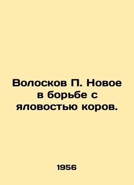 Hair P. New in the fight against cow venom. In Russian /Voloskov P. Novoe v borbe s yalovostyu korov. Moscow: Publishing House of the Ministry of State Farm of the USSR 1956. 48 p. We have thousands of titles and often several copies of each title may be available. Please feel free to contact us for a detailed description of the copies available. SKUalbf481446f96b96378.