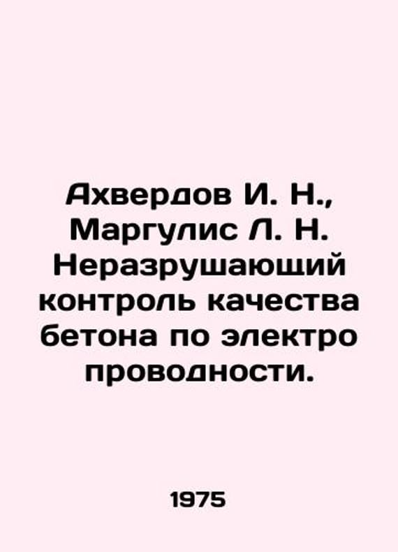 Akhverdov I. N., Margulis L. N. Non-destructive testing of concrete quality by electrical conductivity. In Russian /Akhverdov I. N., Margulis L. N. Nerazrushayushchiy kontrol kachestva betona po elektroprovodnosti. Minsk Science and Technology 1975. 176 p. We have thousands of titles and often several copies of each title may be available. Please feel free to contact us for a detailed description of the copies available. SKUalbf49eda2c42654d01.