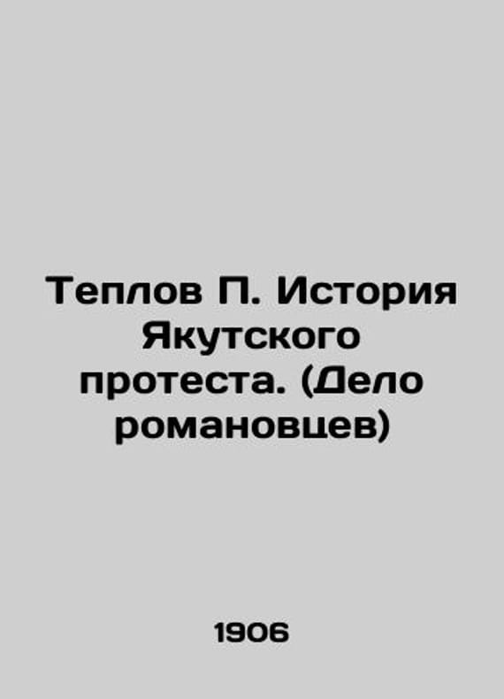 Teplov P. The History of the Yakutsk Protest. (The Romanov Case) In Russian /Teplov P. Istoriya Yakutskogo protesta. (Delo romanovtsev) St. Petersburg, published by N. Glagolev 1906. 480s. We have thousands of titles and often several copies of each title may be available. Please feel free to contact us for a detailed description of the copies available. SKUalbf4a008be825297af.