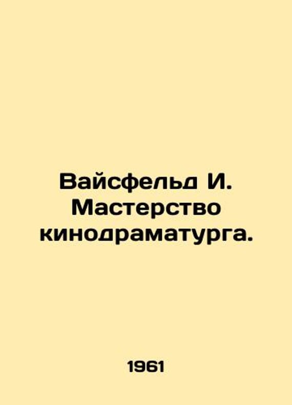 Weisfeld I. Mastery of film playwright. In Russian /Vaysfeld I. Masterstvo kinodramaturga. Weisfeld I. Mastery of film playwright. 1961. Moscow. We have thousands of titles and often several copies of each title may be available. Please feel free to contact us for a detailed description of the copies available. SKUalb910a23b510beede1.