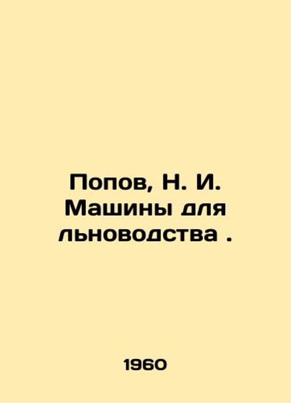 Popov, N. I. Machines for flax production. In Russian /Popov, N. I. Mashiny dlya lnovodstva. M. Mashgiz 1960. We have thousands of titles and often several copies of each title may be available. Please feel free to contact us for a detailed description of the copies available. SKUalbf4e8aa22eda63562.