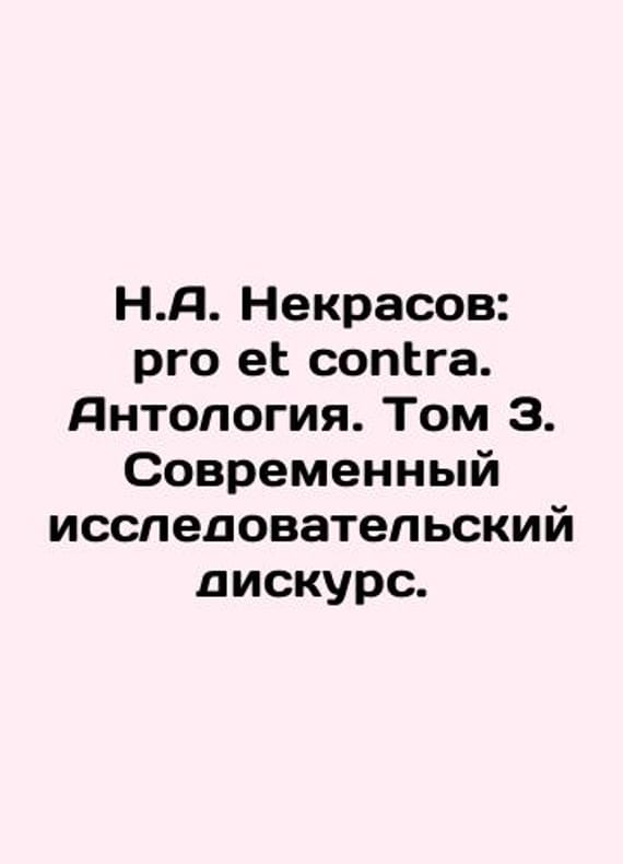 N.A. Nekrasov: pro et contra. Anthology. Volume 3. Contemporary Research Discourse. In Russian /N.A. Nekrasov: pro et contra. Antologiya. Tom 3. Sovremennyy issledovatelskiy diskurs. Series: The Russian Way. Authors-compilers: O.V.Bogdanova, Doctor of Philology, and S.M. Nekrasov, Doctor of Culturology. Saint Petersburg. RKhGA Publishing House. 2022. 960 p. We have thousands of titles and often several copies of each title may be available. Please feel free to contact us for a detailed description of the copies available. SKUalbf4ebad5898550580.