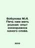 Bobunova M.A. Our mothers oven: the experience of a concordance of one word. In Russian /Bobunova M.A. Pech nam mat rodnaya: opyt konkordansa odnogo slova. Dictionary of Kursk State University 2014, 88 p. We have thousands of titles and often several copies of each title may be available. Please feel free to contact us for a detailed description of the copies available. SKUalbf4f69ee89e260d71.