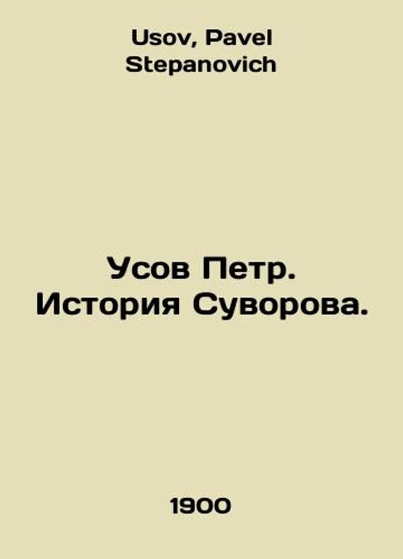 Peters moustache. The story of Suvorov. In Russian /Usov Petr. Istoriya Suvorova. St. Petersburg Publication of M.O.Wolf. Company 1900. 292 p. We have thousands of titles and often several copies of each title may be available. Please feel free to contact us for a detailed description of the copies available. SKUalbf507658c3e4e3883.