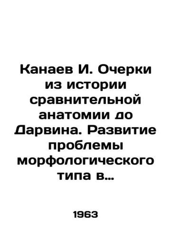 I. Kanaev Essays from the History of Comparative Anatomy to Darwin. Development of the Morphological Type Problem in Zoology. In Russian /Kanaev I. Ocherki iz istorii sravnitelnoy anatomii do Darvina. Razvitie problemy morfologicheskogo tipa v zoologii. Moscow-Leningrad Academy of Sciences of the USSR 1963. 300s. We have thousands of titles and often several copies of each title may be available. Please feel free to contact us for a detailed description of the copies available. SKUalbf541153fdfe6805b.