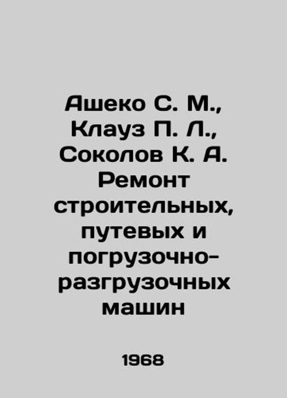 Asheko S. M., Klaus L., Sokolov K. A. Repair of construction, track, and loading and unloading machines In Russian /Asheko S. M., Klauz L., Sokolov K. A. Remont stroitelnykh, putevykh i pogruzochno-razgruzochnykh mashin Edited by L. Klaus. Moscow Transport 1968. We have thousands of titles and often several copies of each title may be available. Please feel free to contact us for a detailed description of the copies available. SKUalbf5632bef6b8fed07.