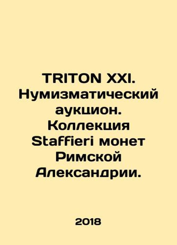 TRITON XXI. Numismatic auction. Staffieri collection of Roman Alexandria coins. In English /TRITON XXI. Numizmaticheskiy auktsion. Kollektsiya Staffieri monet Rimskoy Aleksandrii. Auction catalogue. 273 lots. Auction on January 9, 2018 in New York. In English. New York. USA: 2018. 144s. We have thousands of titles and often several copies of each title may be available. Please feel free to contact us for a detailed description of the copies available. SKUalbf579e2d671f395b4.