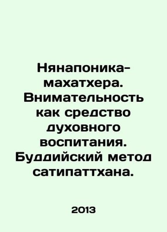 Nanny Mahathera. Mindfulness as a means of spiritual education. Buddhist method of satipatthan. In Russian /Nyanaponika-makhatkhera. Vnimatelnost kak sredstvo dukhovnogo vospitaniya. Buddiyskiy metod satipattkhana.S-Pb. Buddavihara. 2013.We have thousands of titles and often several copies of each title may be available. Please feel free to contact us for a detailed description of the copies available. SKUalbf583e2543422c9a3.