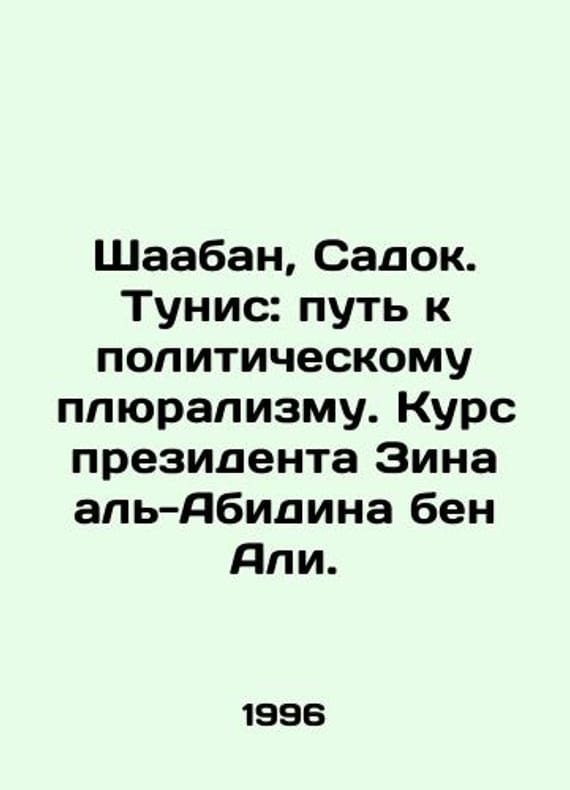 Chaabane, Sadok, Tunis: The Road to Political Pluralism: The Course of President Zine El Abidine Ben Ali. In Russian /Shaaban, Sadok. Tunis: put k politicheskomu plyuralizmu. Kurs prezidenta Zina al-Abidina ben Ali. Moscow ISAA at Moscow State University. 1996. We have thousands of titles and often several copies of each title may be available. Please feel free to contact us for a detailed description of the copies available. SKUalbf587fbf38f7dc3c9.