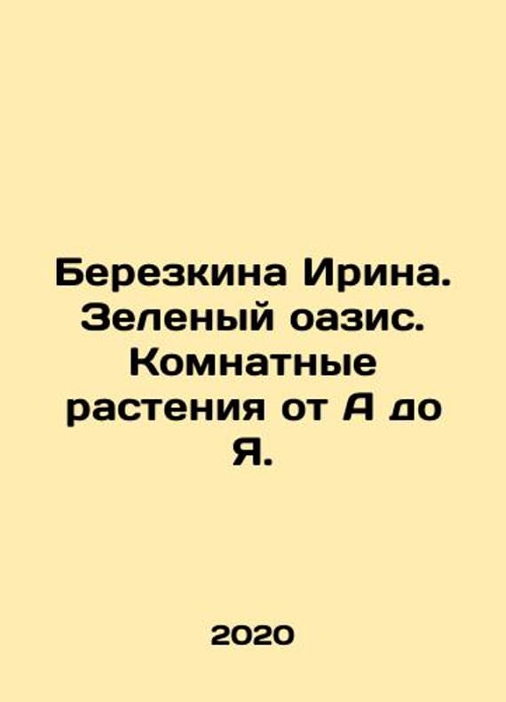 Irina Berezkina. Green oasis. Room plants from A to I. In Russian /Berezkina Irina. Zelenyy oazis. Komnatnye rasteniya ot A do Ya. M Expo. 2020 256 pp. We have thousands of titles and often several copies of each title may be available. Please feel free to contact us for a detailed description of the copies available. SKUalbf5b3e1838424d1f5.