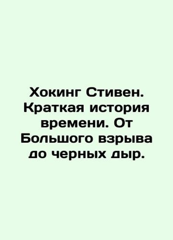 Stephen Hawking: A Brief History of Time: From the Big Bang to Black Holes In Russian /Khoking Stiven. Kratkaya istoriya vremeni. Ot Bolshogo vzryva do chernykh dyr M. ACT 2022. 272 We have thousands of titles and often several copies of each title may be available. Please feel free to contact us for a detailed description of the copies available. SKUalb2195294d808cc136.