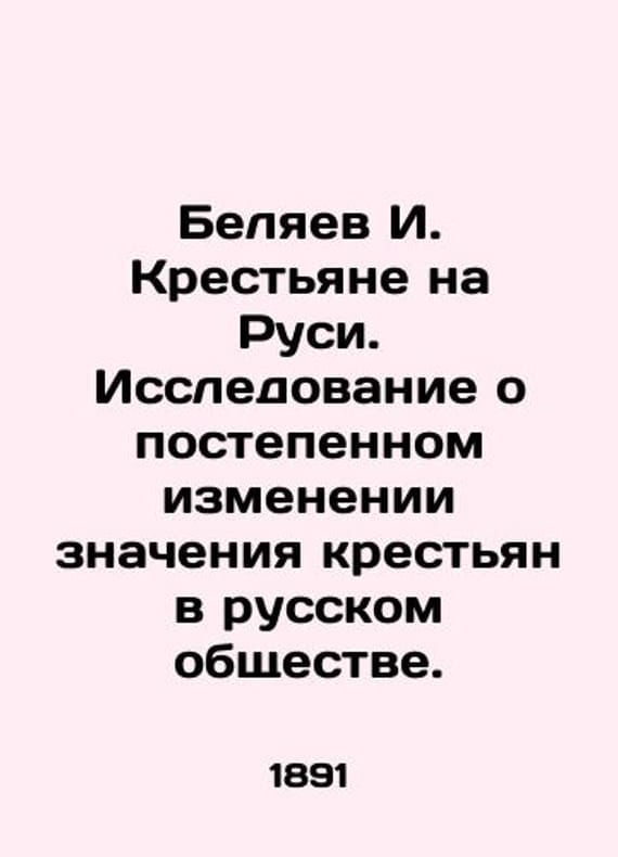 Belyaev I. Peasants in Rus. A study on the gradual change in the meaning of peasants in Russian society. In Russian (ask us if in doubt)/Belyaev I. Krestyane na Rusi. Issledovanie o postepennom izmenenii znacheniya krestyan v russkom obshchestve. Moscow: Printing House of the Useful Book Distribution Society 1891. 296c. SKUalbf5d79fca5fbddf93.