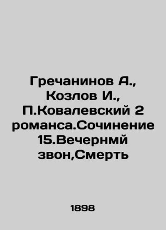 Grechaninov A., Kozlov I., P. Kovalevsky 2 romans.Compilation 15.Vechernm ringing, Death In Russian /Grechaninov A., Kozlov I., P.Kovalevskiy 2 romansa.Sochinenie 15.Vechernmy zvon,Smert Leipzig 1898. 8 p. We have thousands of titles and often several copies of each title may be available. Please feel free to contact us for a detailed description of the copies available. SKUalbf5e89fdd7d9a9163.