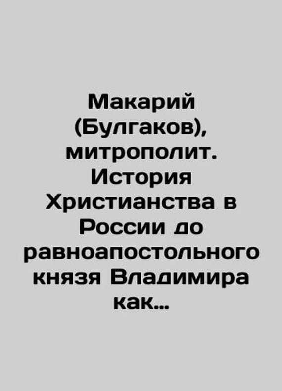 Makariy (Bulgakov), Metropolitan. The history of Christianity in Russia up to Equal-of-the-Apostles Prince Vladimir as an introduction to the history of the Russian Church. In Russian /Makariy (Bulgakov), mitropolit. Istoriya Khristianstva v Rossii do ravnoapostolnogo knyazya Vladimira kak vvedenie v istoriyu Russkoy Tserkvi. M. Omega-L 2022. 214 p. We have thousands of titles and often several copies of each title may be available. Please feel free to contact us for a detailed description of the copies available. SKUalbf5ea0f1dd06a3362.