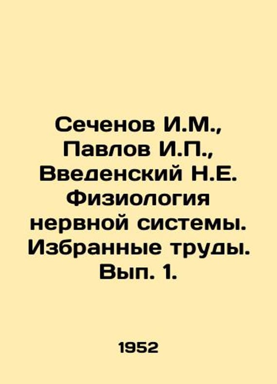 Sechenov I.M., Pavlov I.P., Vedensky N.E. Physiology of the nervous system. Selected works. Volume 1. In Russian /Sechenov I.M., Pavlov I.P., Vvedenskiy N.E. Fiziologiya nervnoy sistemy. Izbrannye trudy. Vyp. 1. M. Medical Literature 1952. We have thousands of titles and often several copies of each title may be available. Please feel free to contact us for a detailed description of the copies available. SKUalbf5ee9ef9d5e02cc9.