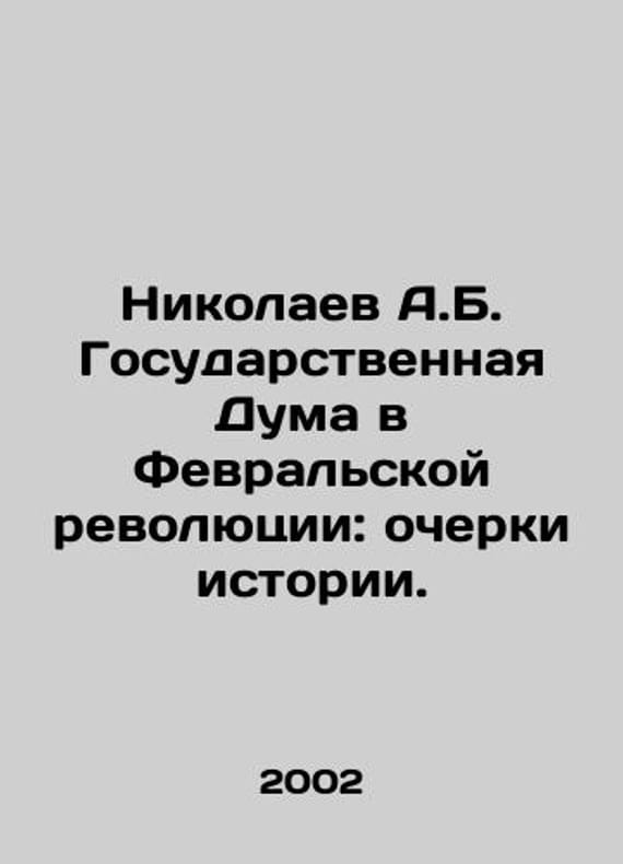 Nikolaev A.B. The State Duma in the February Revolution: Essays on History. In Russian /Nikolaev A.B. Gosudarstvennaya Duma v Fevralskoy revolyutsii: ocherki istorii. Series: Modern Russian History: Studies and Documents. Vol.2. Ryazan, 2002. 302 p. We have thousands of titles and often several copies of each title may be available. Please feel free to contact us for a detailed description of the copies available. SKUalbf61da4d92ec58faa.