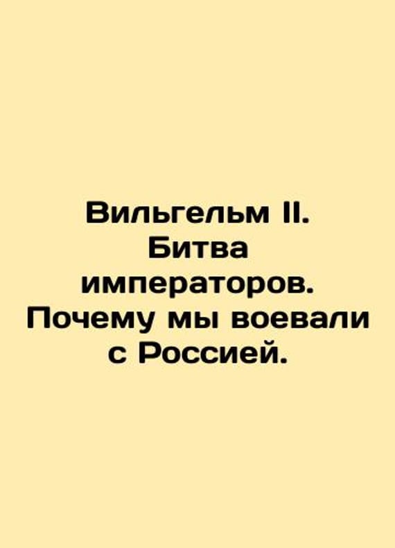 William II. The Battle of the Emperors: Why We Were at War with Russia. In Russian /Vilgelm II. Bitva imperatorov. Pochemu my voevali s Rossiey. M. Rodina 2023. 256 p. We have thousands of titles and often several copies of each title may be available. Please feel free to contact us for a detailed description of the copies available. SKUalbf65d16f93616d1c2.