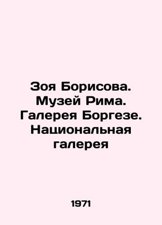Zoya Borisova. Museum of Rome. Galleria Borghese. National Gallery In Russian /Zoya Borisova. Muzey Rima. Galereya Borgeze. Natsionalnaya galereya Moscow Fine Arts 1971. 170p.. We have thousands of titles and often several copies of each title may be available. Please feel free to contact us for a detailed description of the copies available. SKUalbf691c57b62508f1b.
