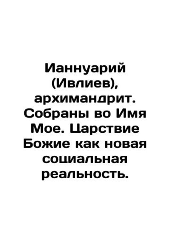 Iannuarius (Ivliev), archimandrite. Collected in My Name. The Kingdom of God as a new social reality. In Russian /Iannuariy (Ivliev), arkhimandrit. Sobrany vo Imya Moe. Tsarstvie Bozhie kak novaya sotsialnaya realnost. M. Nikkei 2022. 192 p. We have thousands of titles and often several copies of each title may be available. Please feel free to contact us for a detailed description of the copies available. SKUalbf712f74b7c6b9201.