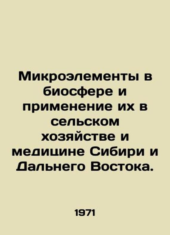 Micronutrients in the biosphere and their application in agriculture and medicine in Siberia and the Far East. In Russian /Mikroelementy v biosfere i ikh primenenie v selskom khozyaystve i meditsine Sibiri i Dalnego Vostoka. Reports of the IV Siberian Conference, 11-14 July 1972, Barnaul. Ulan-Ude Publishing House of the USSR Academy of Sciences 1973. We have thousands of titles and often several copies of each title may be available. Please feel free to contact us for a detailed description of the copies available. The delivery of this book might be delayed beyond the usual timeframe due to extended processing and preparation before shipment, and faster shipping opSKUalb2e85f3c1a5c9f146