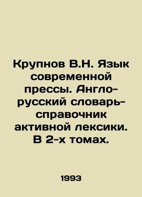 Krupnov V.N. Language of the modern press. English-Russian dictionary-reference of active vocabulary. In 2 volumes. In Russian /Krupnov V.N. Yazyk sovremennoy pressy. Anglo-russkiy slovar-spravochnik aktivnoy leksiki. V 2-kh tomakh. M. Higher School. 1993. 224 and 237p.. We have thousands of titles and often several copies of each title may be available. Please feel free to contact us for a detailed description of the copies available. SKUalbf77a31eff834e748.