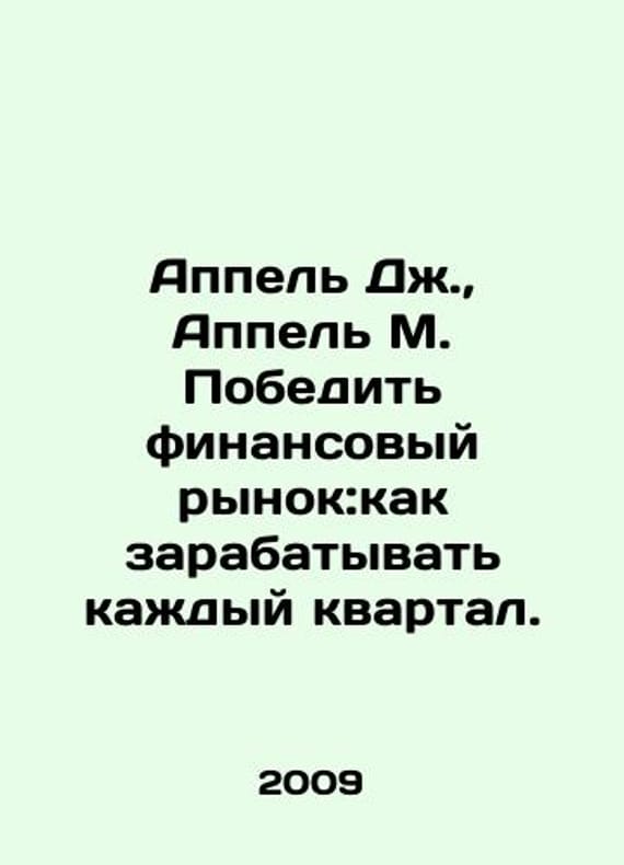 Appel J., Appel M. Beating the Financial Market: How to Earn Every Quarter. In Russian /Appel Dzh., Appel M. Pobedit finansovyy rynok:kak zarabatyvat kazhdyy kvartal.Short Investment Strategies. Translated from English by Borovkova V. Trading Investments. St. Petersburg, 2009.We have thousands of titles and often several copies of each title may be available. Please feel free to contact us for a detailed description of the copies available. SKUalbf781d059c46b2370.