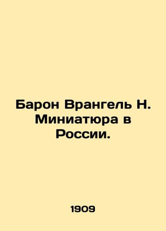 Baron Wrangel N. Miniature in Russia. In Russian (ask us if in doubt)/Baron Vrangel N. Miniatyura v Rossii. Short description: In Russian (ask us if in doubt).Essays on the history of miniature in Russia. St. Petersburg. Edition of the monthly Stary Years. 1909. 65 p. We have thousands of titles and often several copies of each title may be available. Please feel free to contact us for a detailed description of the copies available. SKUalbf78b69226933a369