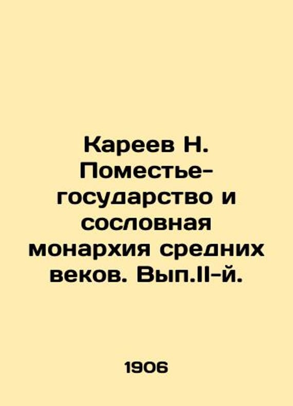 N. Kareev Manor-State and the Middle Ages Estates Monarchy. Volume II. In Russian /Kareev N. Pomeste-gosudarstvo i soslovnaya monarkhiya srednikh vekov. Vyp.II-y. An Essay on the Development of the Social System and Political Institutions in Western Europe in St. Petersburg, 1906. We have thousands of titles and often several copies of each title may be available. Please feel free to contact us for a detailed description of the copies available. SKUalbf7a5bea04cc6f701.
