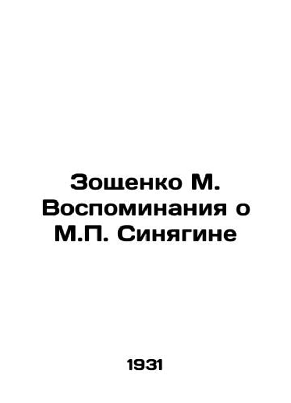 Zoshchenko M. Memories of M. Sinyagin In Russian /Zoshchenko M. Vospominaniya o M. Sinyagine Memories of Michel Sinyagin Leningrad. Writers Publishing House in Leningrad 1931. We have thousands of titles and often several copies of each title may be available. Please feel free to contact us for a detailed description of the copies available. SKUalbf7a7f251d2fad49d.