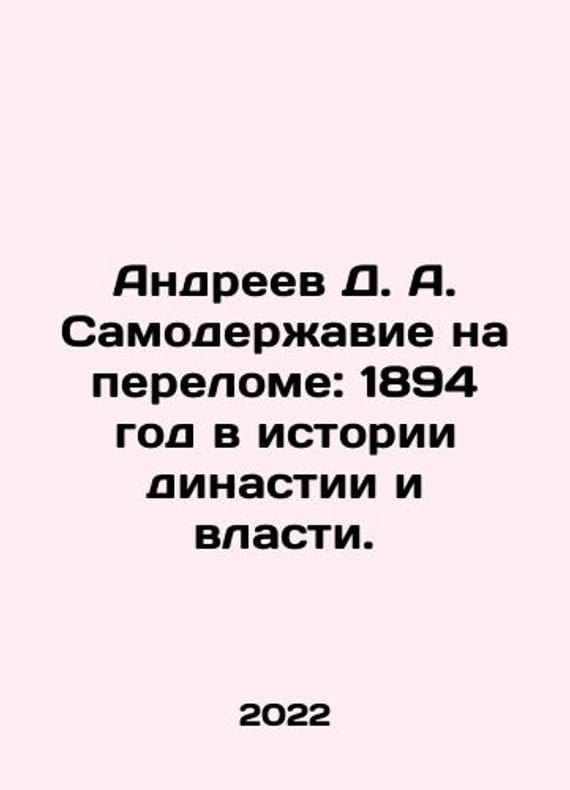 Andreev D. A. Autocracy at the Turn: 1894 in the History of Dynasty and Power. In Russian /Andreev D. A. Samoderzhavie na perelome: 1894 god v istorii dinastii i vlasti. Proceedings of the Historical Faculty of Moscow State University. Volume 207. Ser. II: Historical Research. 138. St. Petersburg. Aleteiya 2022. 234 p. We have thousands of titles and often several copies of each title may be available. Please feel free to contact us for a detailed description of the copies available. SKUalbf7b9d2c1131a8213.