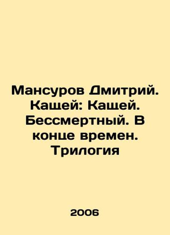 Dmitry Mansurov. Kashey: Kashey. Immortal. At the end of time. Trilogy In Russian /Mansurov Dmitriy. Kashchey: Kashchey. Bessmertnyy. V kontse vremen. Trilogiya Series: In one volume of M. Alphas 2006 book. Century after century Kashey, the Immortal creates small and large pieces for his own amusement, having fun, causing headaches for people and impurity. But the abduction of the curious Queen Mary turns his life upside down. We have thousands of titles and often several copies of each title may be available. Please feel free to contact us for a detailed description of the copies available. SKUalbf7d7511d3056e33d.